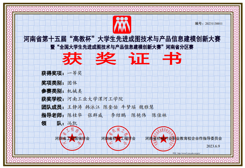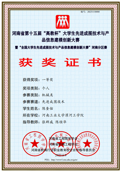 5月27日,由河南省工程图学学会、河南省机械工程学会、河南省机械行业职业教育校企合作指导委员会联合举办的河南省第十五届“高教杯”老员工先进成图技术创新大赛隆重举行,漯河工公司WilliamHill中文官网荣获团体一等奖。