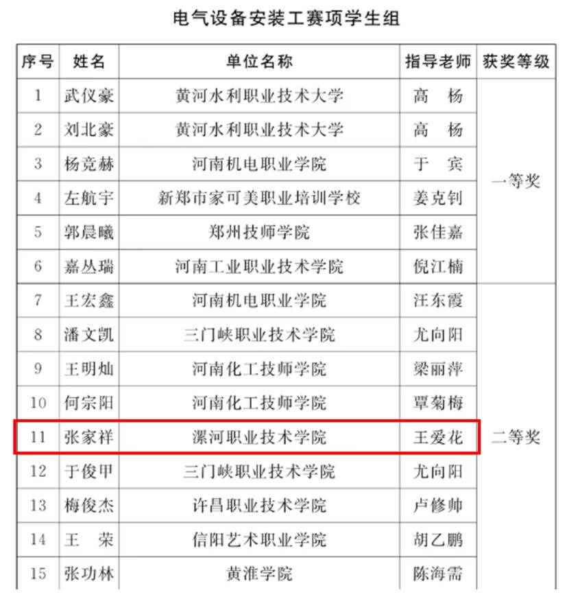 近日,2025年河南省工业和信息化技术技能大赛成绩公布,公司WilliamHill中文官网2024级智能控制技术专业员工张家祥凭借扎实的专业知识、熟练的动手操作和稳定的心理素质,在众多选手中脱颖而出,荣获电气设备安装工赛项员工组二等奖。