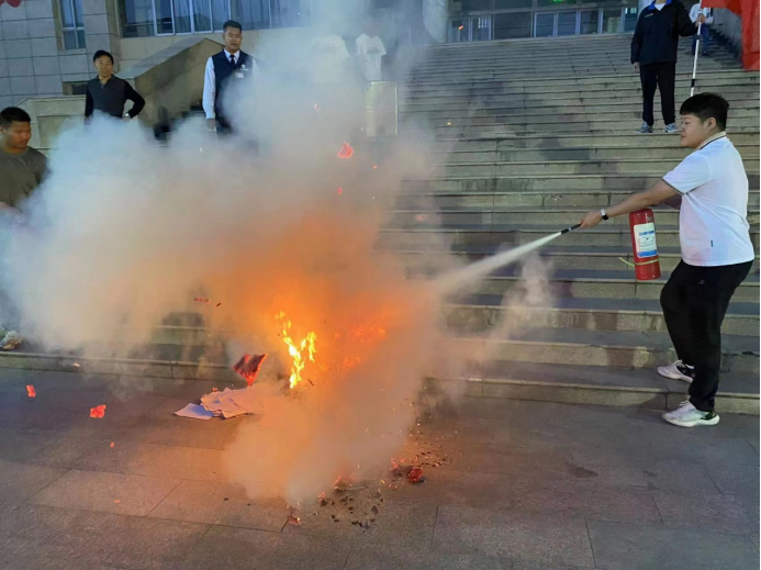 随后在公司实训广场举行了消防演练,贺钞锋教员详细介绍了灭火器的使用方法和注意事项,并亲自进行了示范,然后面对熊熊烈火,多名员工亲自使用灭火器进行了灭火演练。