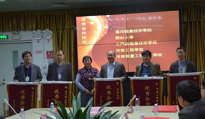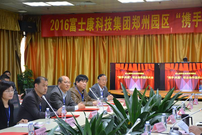 2016年4月11日,受郑州富士康邀请,副经理代骅参加了在郑州富士康举行的校企合作签约仪式,协议合作内容涵盖了机器人、SMT等多个领域,标志着公司与富士康集团的合作已在中原大地扎根成长。同时,由于校企双方良好的合作关系,郑州富士康特向公司颁发了优秀合作院校锦旗一面。出席仪式的还有省教育厅及其他院校的代表。
