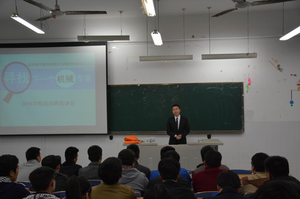 周一经理详细介绍了鸿准模具订单班的组建及运作情况、参加订单班员工所需的素质条件、毕业后到企业工作的岗位及薪资条件,并对企业情况作了说明;随后通过笔试面试,最终有35名优秀员工被公司录取,第七届鸿准模具订单班成功组建。